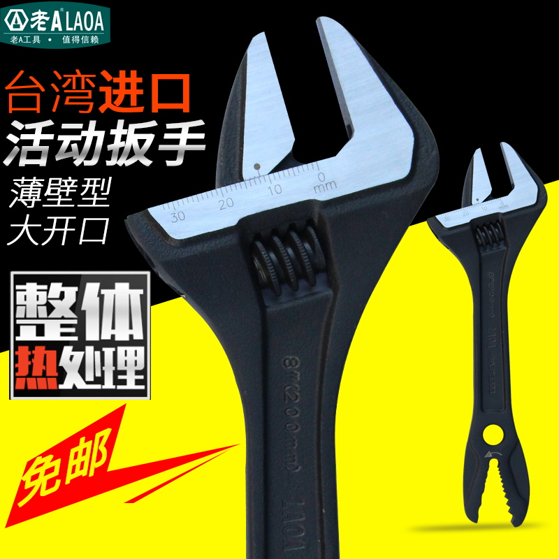 Old A Taiwan-originated large open-ended adjustable wrench multi-function adjustable wrench crocodile-type adjustable wrench 8 inches
