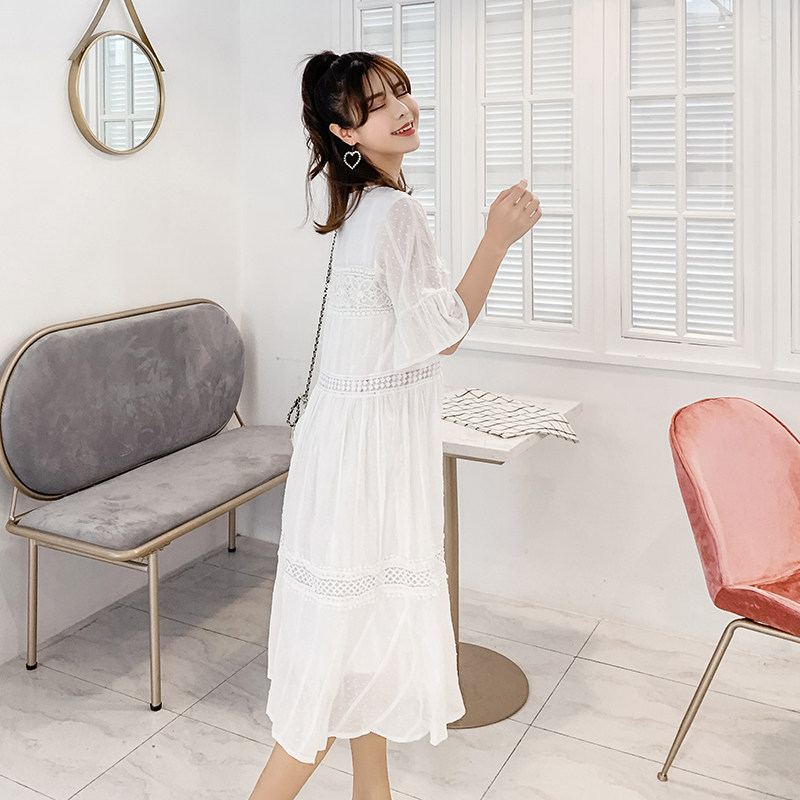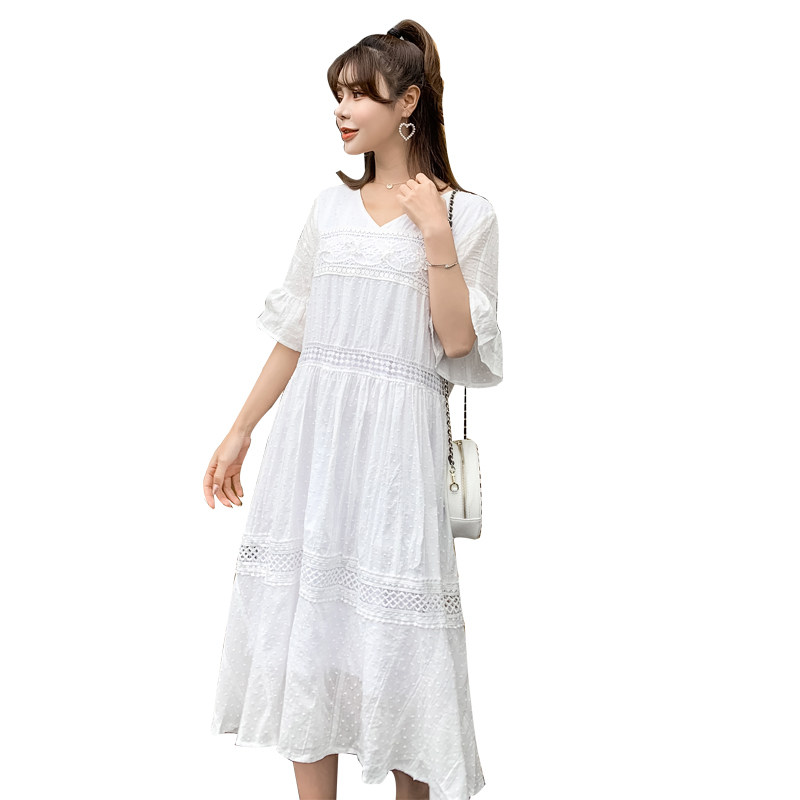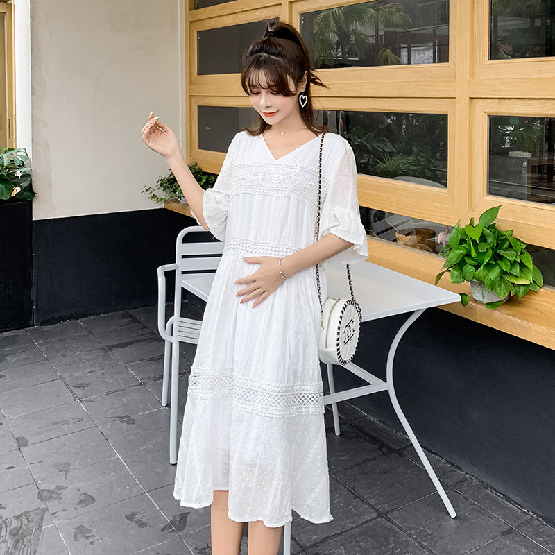 Maternity summer dress 2021 new maternity summer dress medium and long version lace maternity dress V-neck long dress