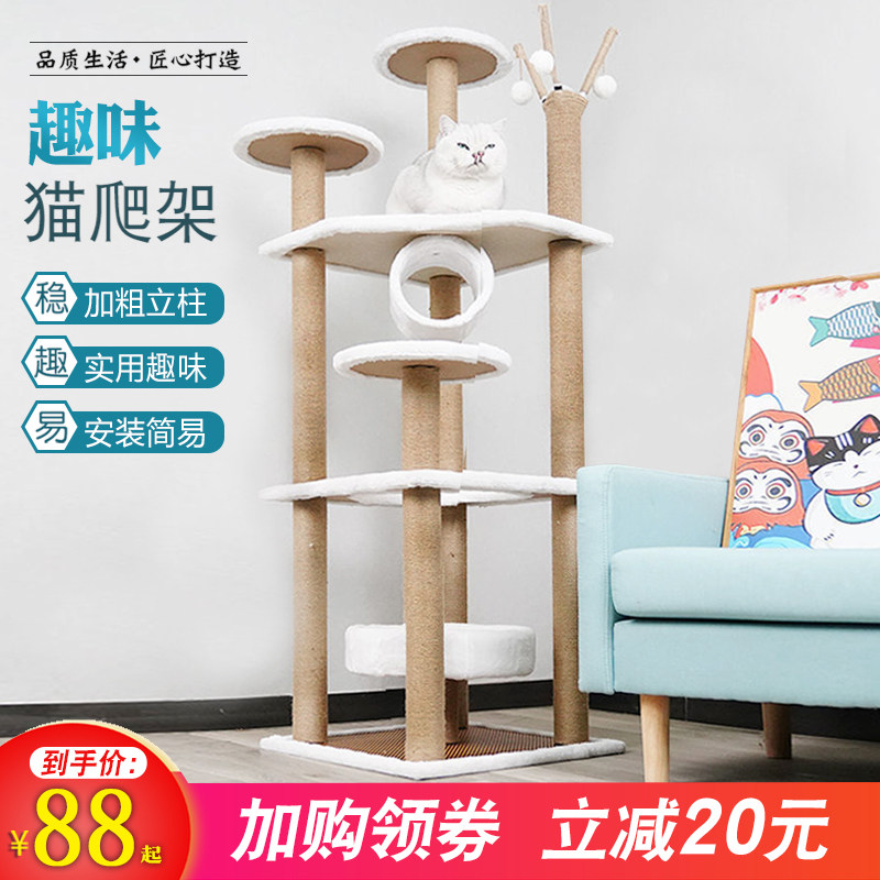 Four seasons rattan mat cat scratch board cat climbing frame big cat scratch column density cat tree cat nest integrated exit cat jumping platform