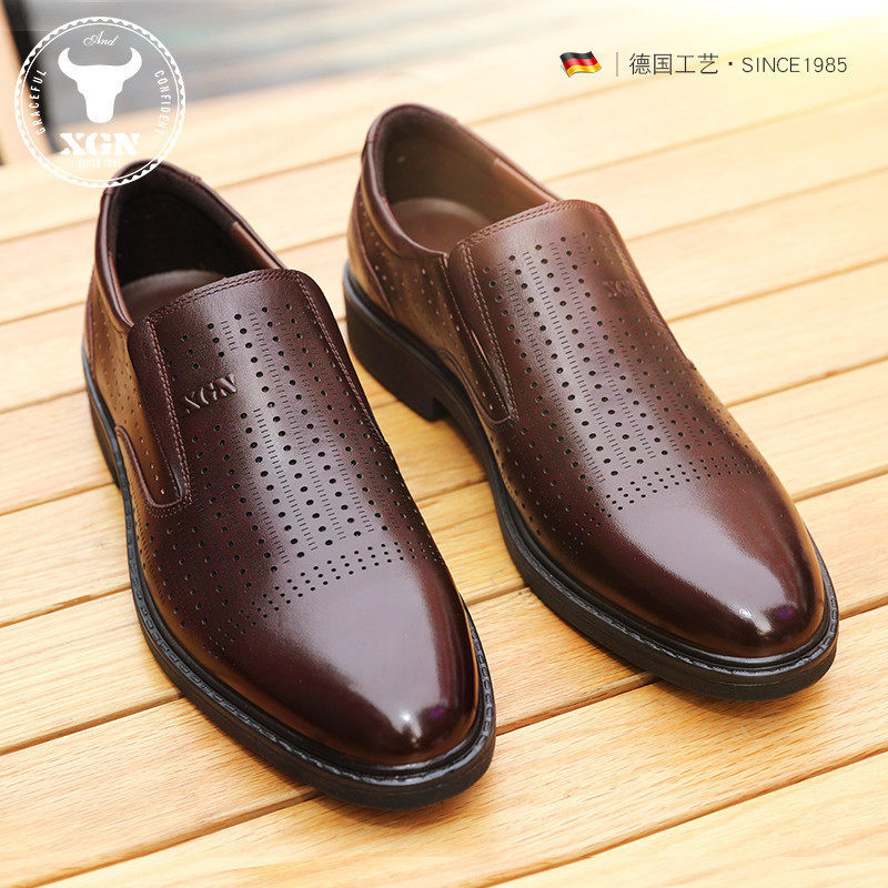 XGN little bull men's shoes formal business shoes British all-match leather one pedal breathable wear-resistant casual leather shoes men