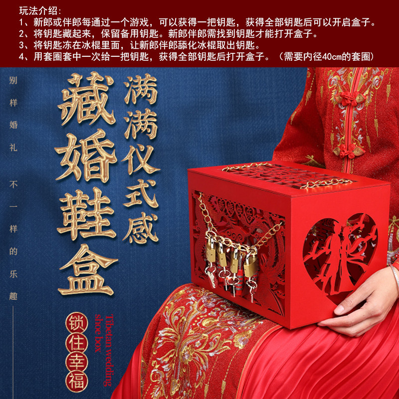 Wedding Tibetan wedding shoes artifact with lock Chinese box to pick up the whole groom to find shoes game wedding creative supplies
