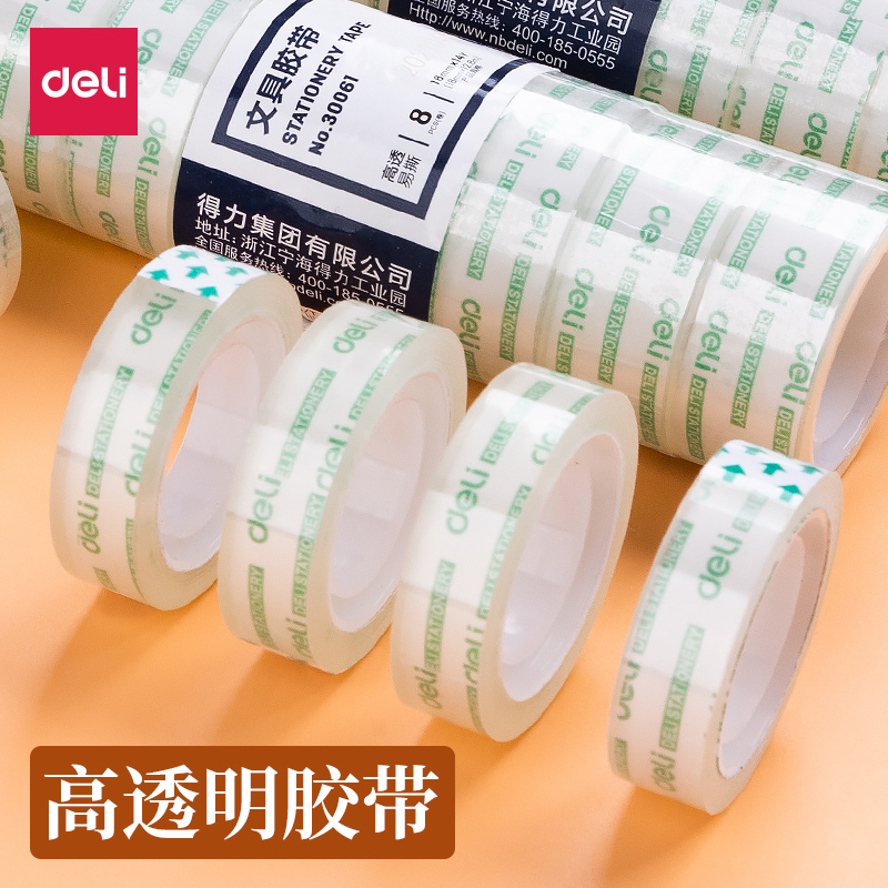 Deli stationery glue Transparent tape Small tape Handmade tape paper Student stationery handmade tape Stationery tape Tear tape tape 1 2 1 8cm tape 12 meters transparent tape tape