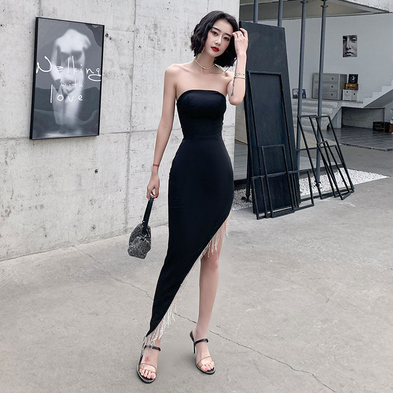 Black dress skirt 2022 new fishtail tassel gas field queen banquet host evening dress long version female