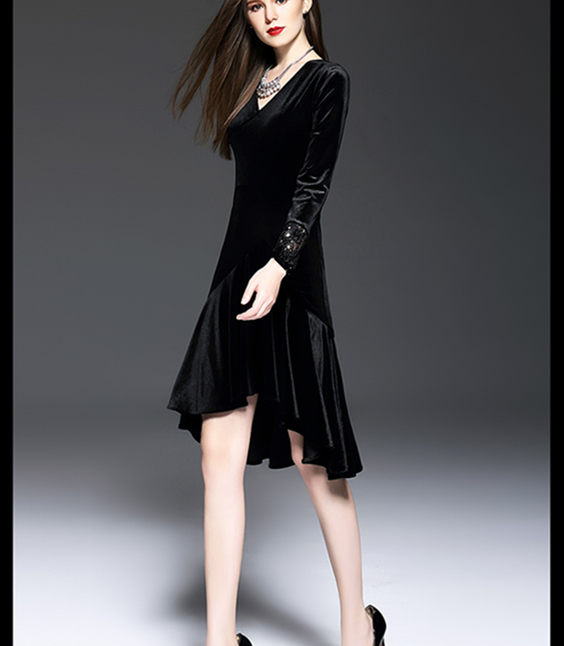Spring, autumn and winter new women's long-sleeved velvet dance dress performance costumes presided over Taiwan costumes large size costumes Latin skirts