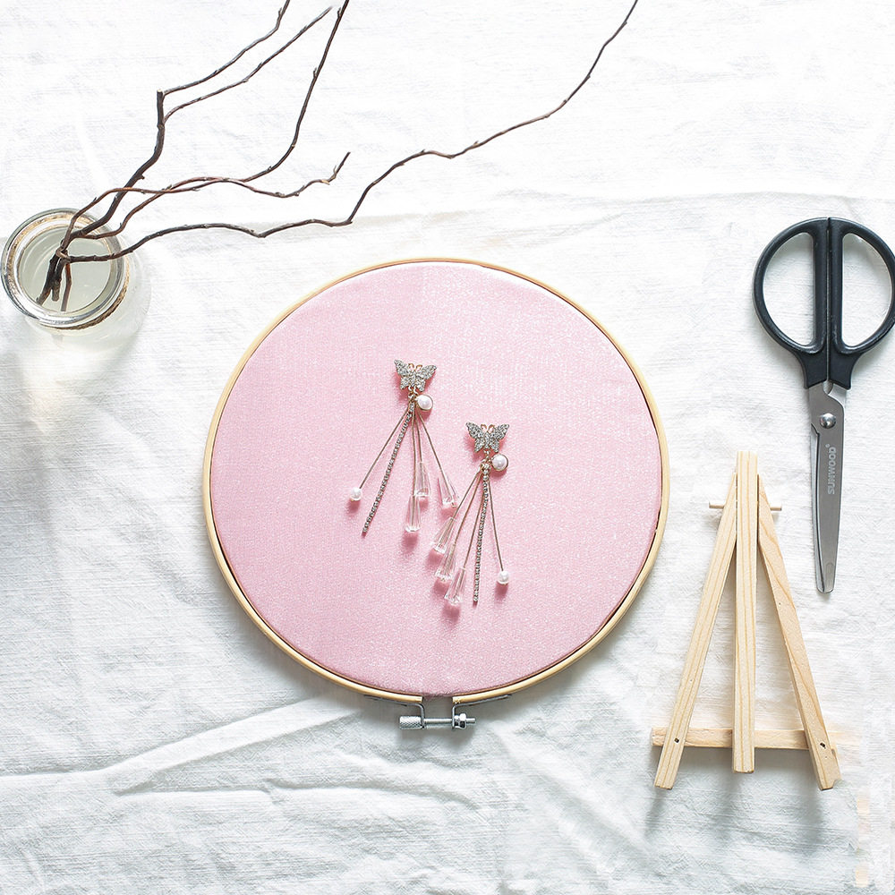 INS Earrings Necklace containing finishing frame Female yarn Jewelry Net Red Shaking Sound Disc Bamboo Embroidered and Swaying Pieces Wall-mounted