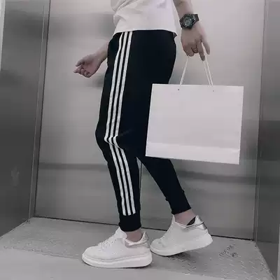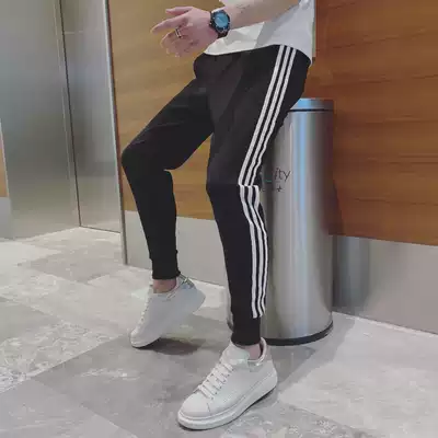 Net red tide brand striped casual pants men's 2021 summer new pants sweatpants men's thin drawstring sweatpants