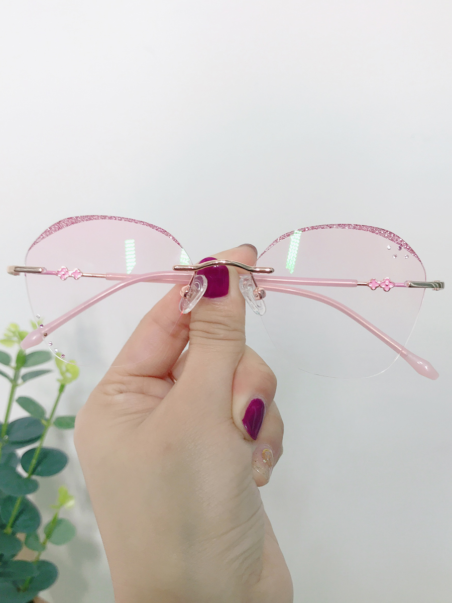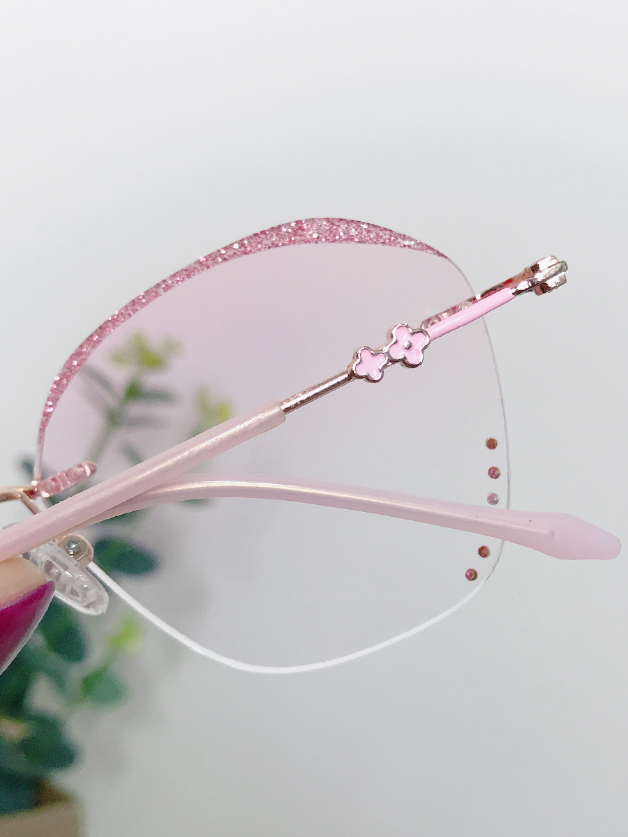Diamond cut edge myopia glasses women can match the degree of makeup frameless glasses frame big face is thin Korean version of the tide anti-blue light