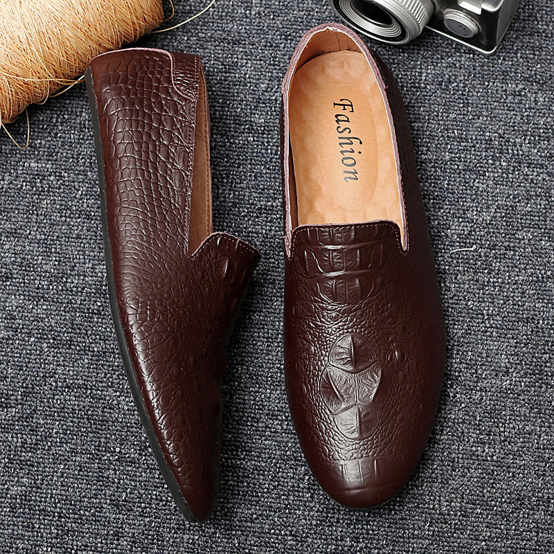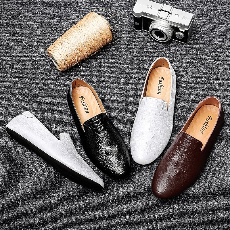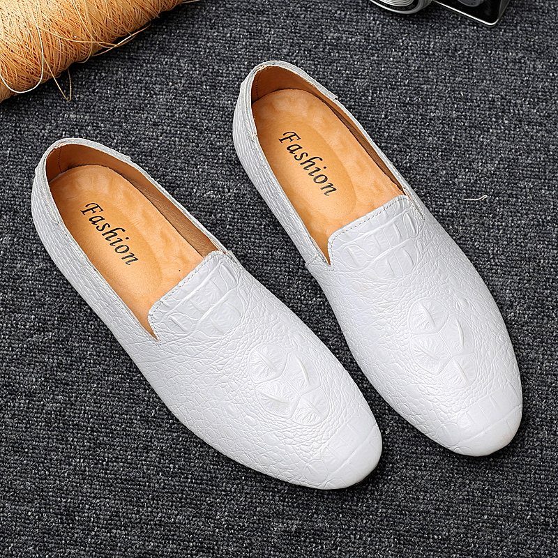 Peas shoes men's new crocodile pattern white leather small leather shoes men's casual shoes social guys lazy shoes all-match