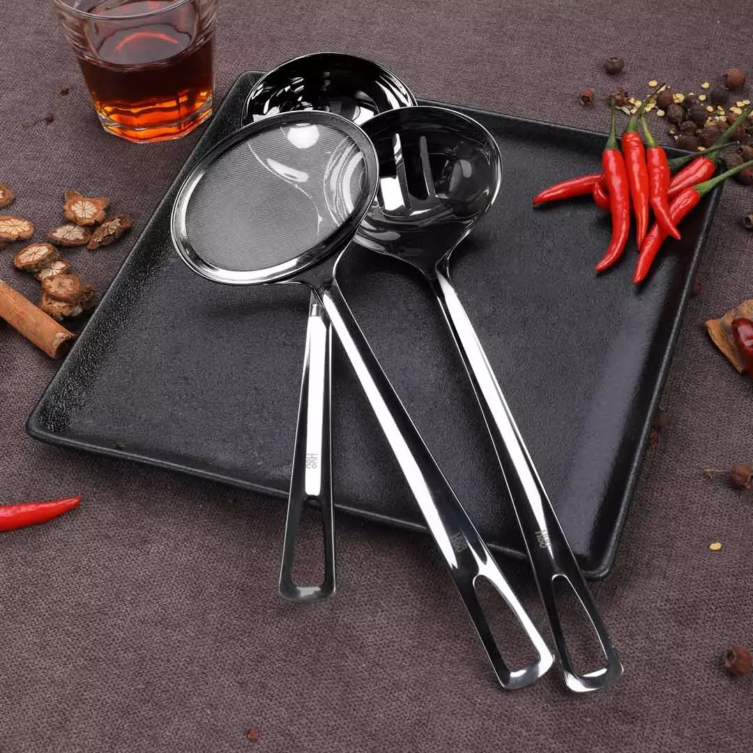 Fire stainless steel spoon 304 mirror polishing household small leaky spoon foam dress kit diluted rice