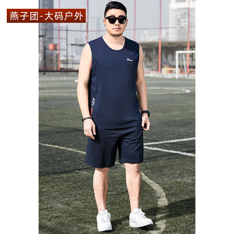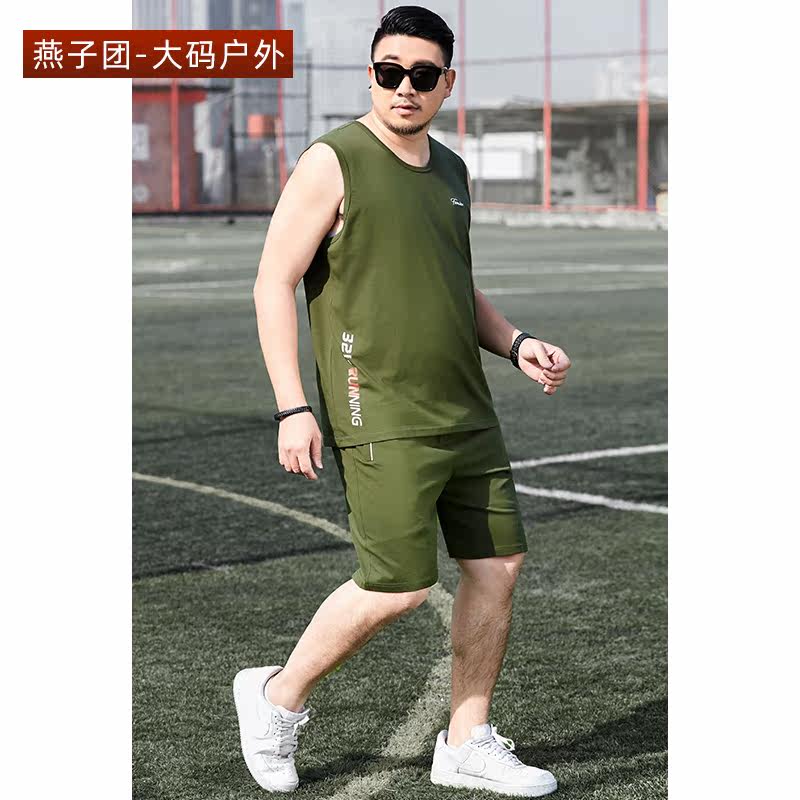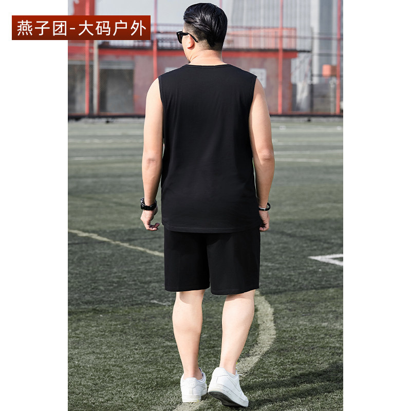 Summer men's vest suit loose two-piece suit plus fertilizer plus size casual sports sleeveless T-shirt shorts trend