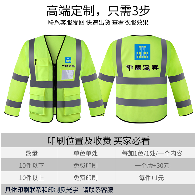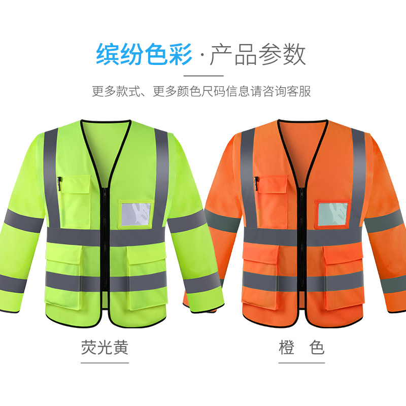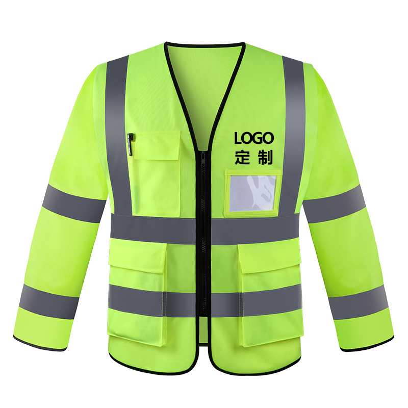 Long Sleeve Reflective Safety Vest Construction Waistcoat Fluorescent Yellow Safety Clothing Traffic Sanitation Worker Jacket Customizable
