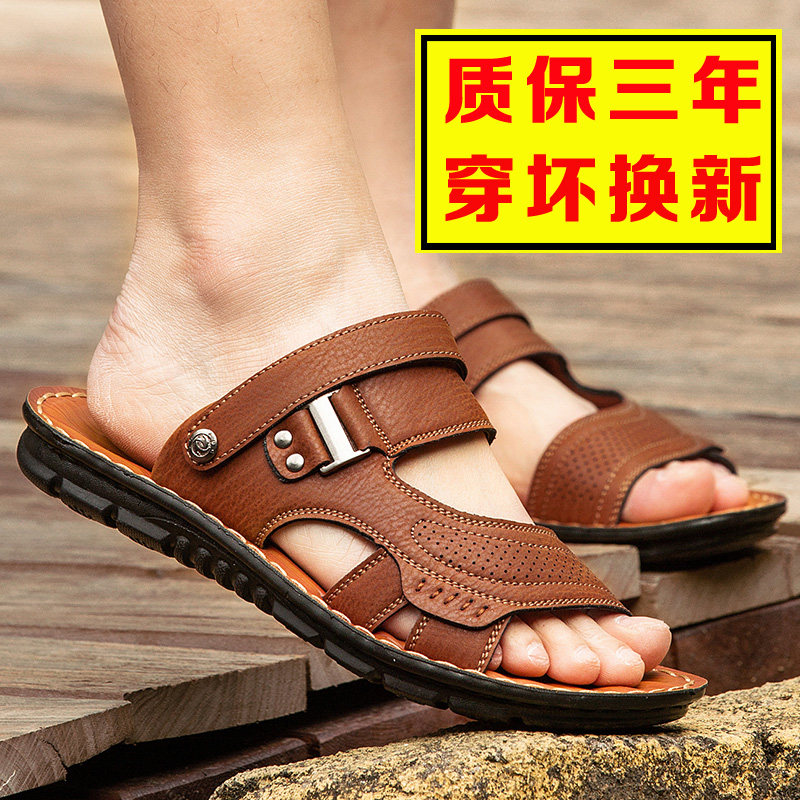 Summer 2023 new men sandals slippers with male skin sandals driving casual and non - slip outside the beach shoes tide
