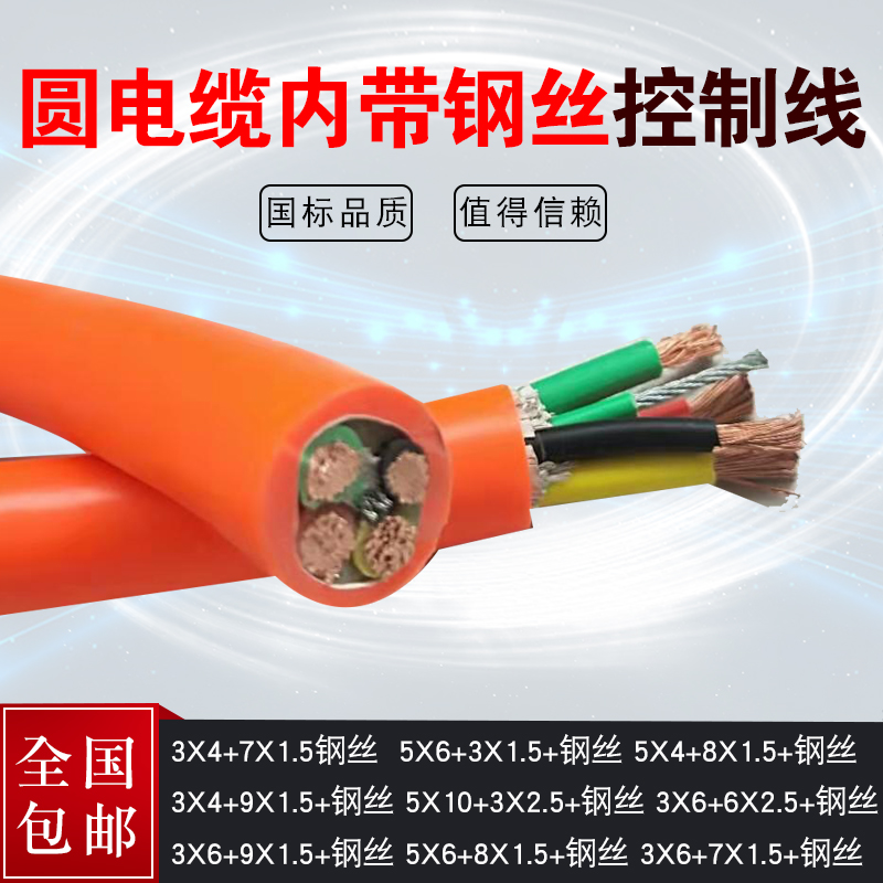 Travelling drum round cable inner belt steel wire 3 * 4 1 3 * 6 1 square 9 core electric crane crane control wire