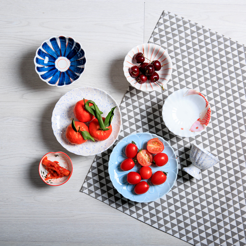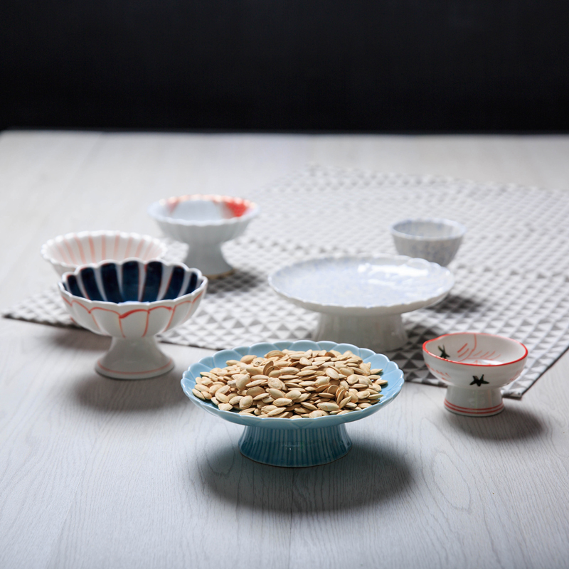 Blue Dot High-Foot Vine High-Footprint Blue Dot Plate High-foot Blue Plate Highly-footed Dish Lotus High-heeled Disk Lotus Carp