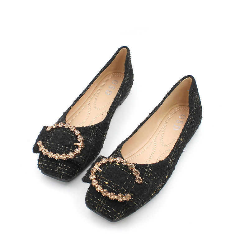 Tide Cards Single Shoes Woman 2022 Spring new metal buckle European and American genuine leather retro casual shallow square head flat-bottom ladle shoes