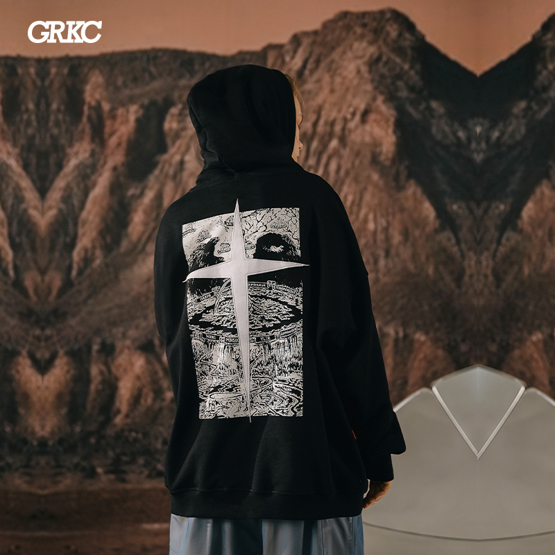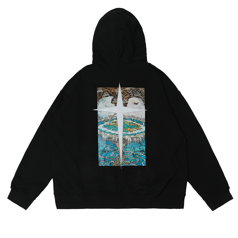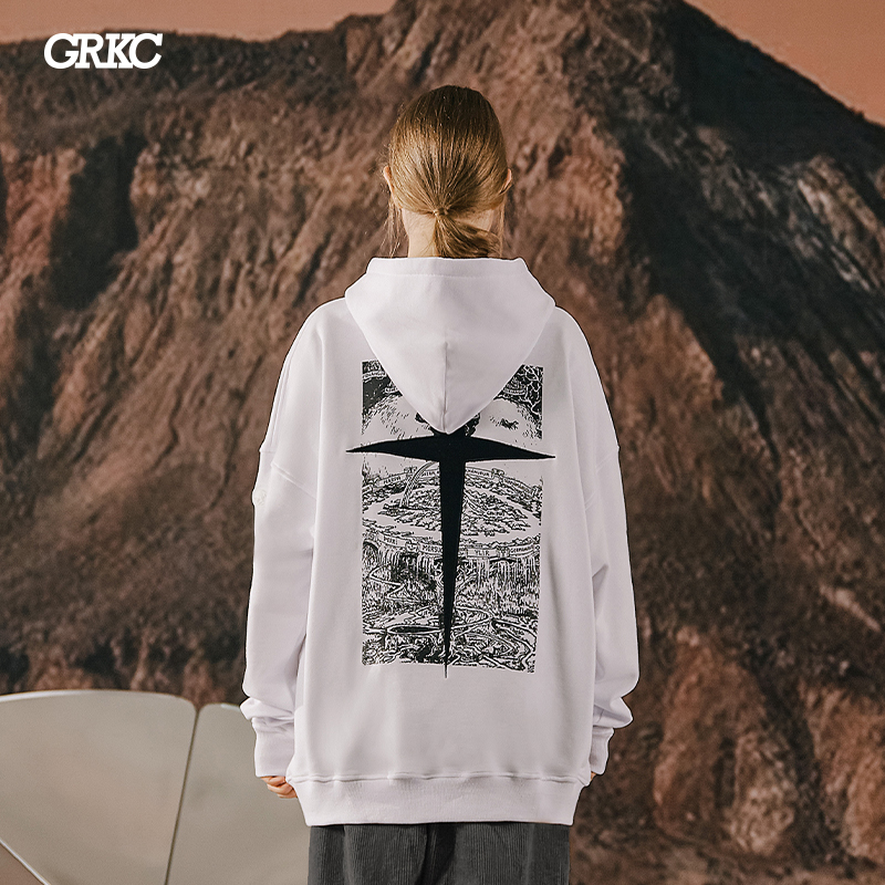 GRKC Greek map oil painting sweater men and women trend printing couple loose hoodie national trend brand top autumn and winter