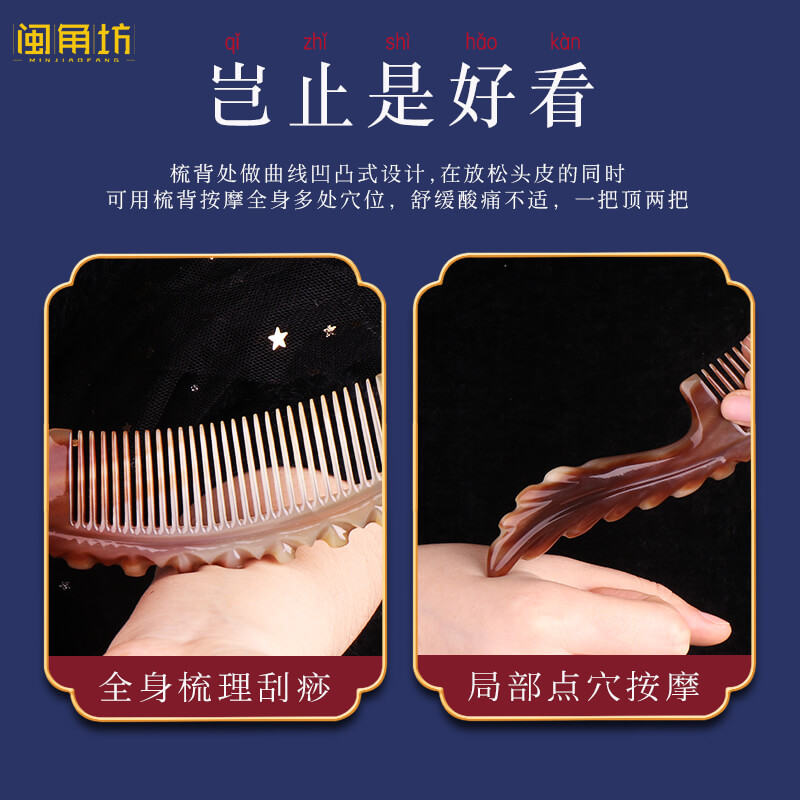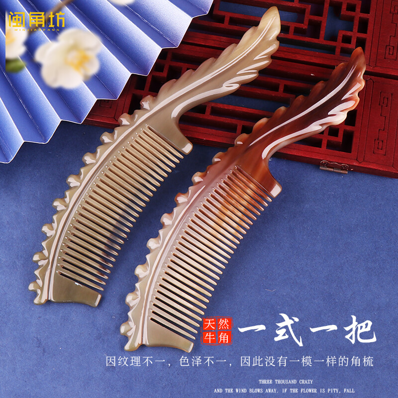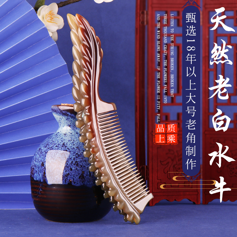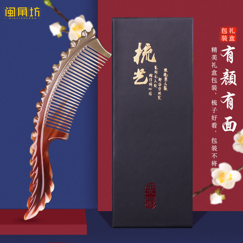 Minjiao Workshop Boutique big number Fengwei grain white water buffalo horn comb gift box with direct sowing room National Day gift gift-giving