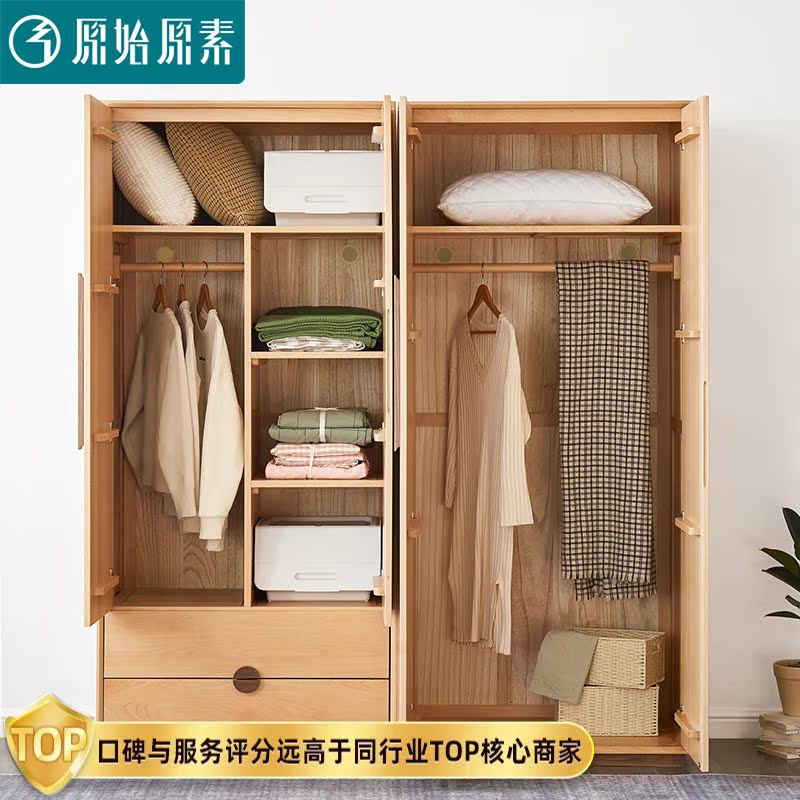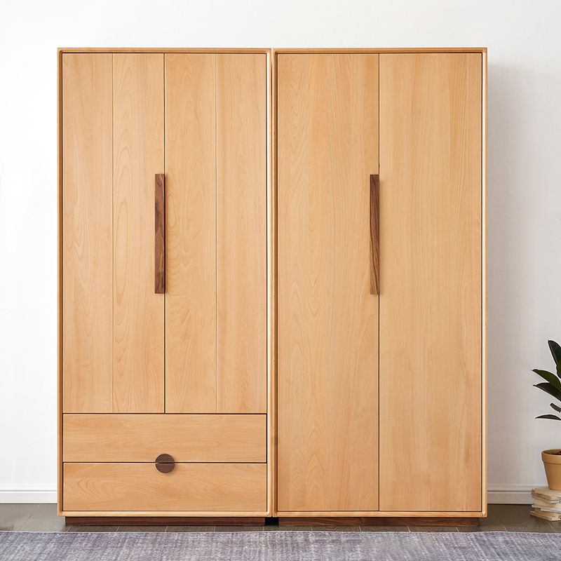 Original raw solid wood wardrobe modern simple bedroom furniture environmentally friendly storage storage two-door wardrobe F7041