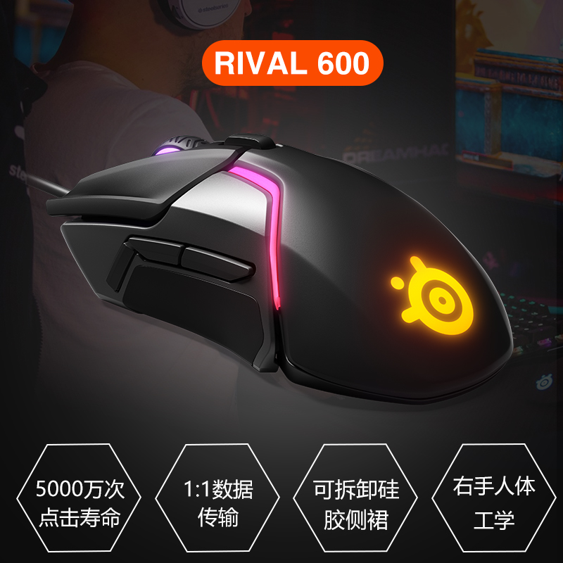 Limited edition Sai Rui rival 600 dual-sensor detachable counterweight macro program design chicken-eating gaming mouse