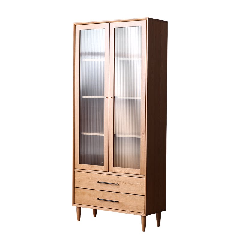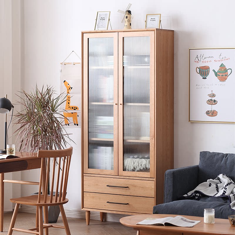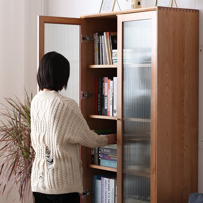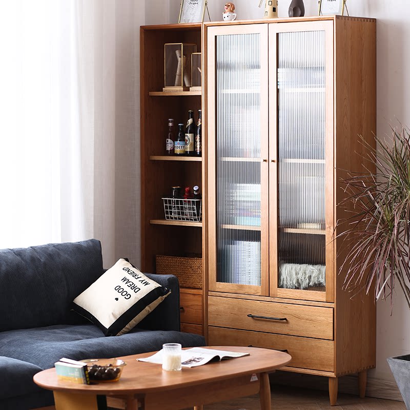 Solid wood bookcase with door glass bookcase combination study Nordic Japanese minimalist shelf cherry wood storage bookshelf