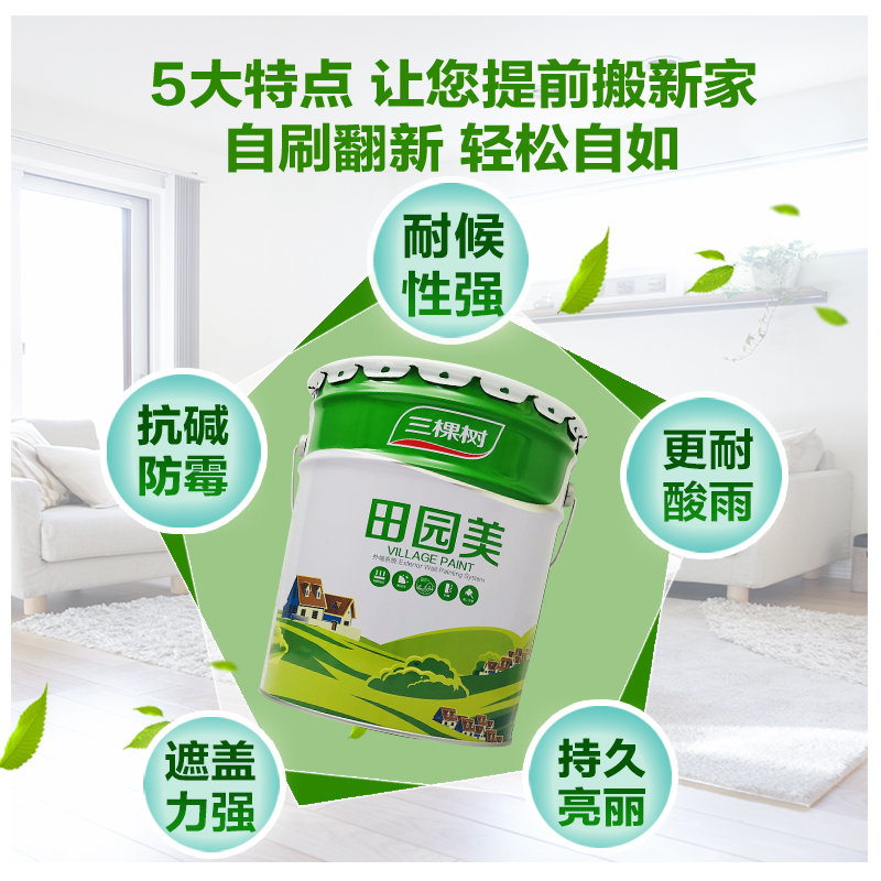Three Trees Pastoral Beauty Latex Paint Weather Resistant Acid Rain Exterior Wall Paint White Matte Finish Paint Color Toning Easy Construction