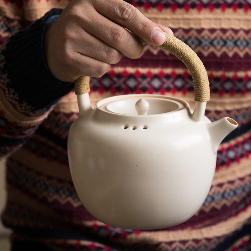 Bucket Room Case in Jingdezhen Artisanal Soda glazed white clay pottery jug Boiled Teapot Cooking Teapot Household Burning Kettle Tea Special