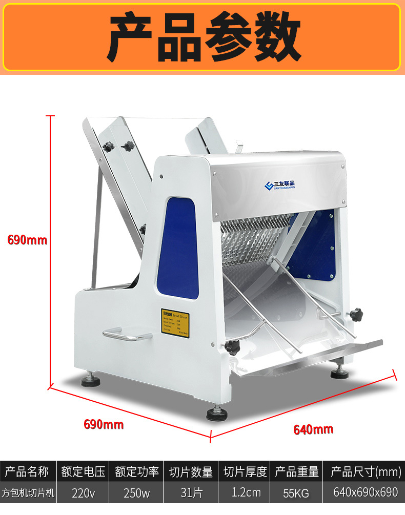 Triple Friendship Pint Bread Slicer Commercial Fully Automatic Square Bag Slicing Machine Multifunction Electric Toast Slicer