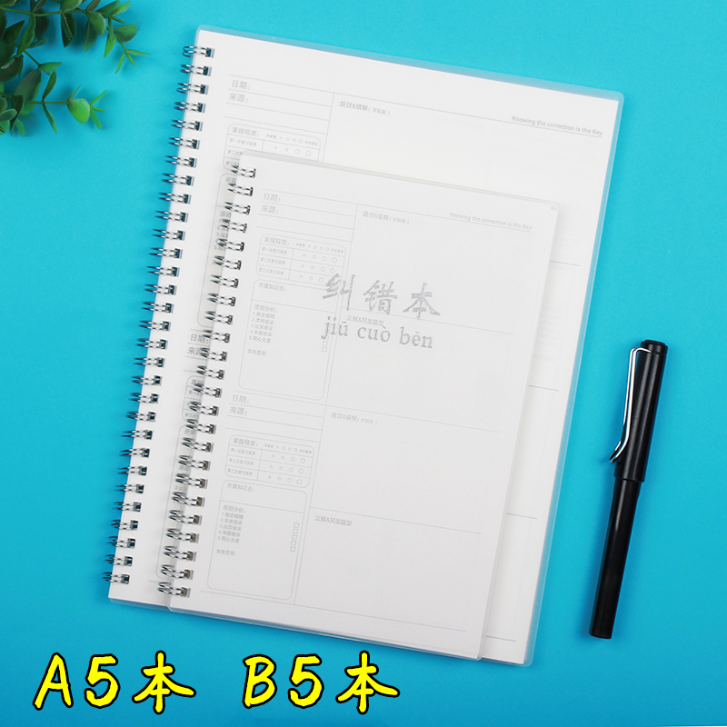 Simple transparent A5b5 classroom error correction topic blank mesh horizontal notebook English this PP cover coil book