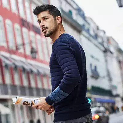 Special offer]Autumn new men's sweater men's simple round neck slim casual contrast pullover sweater 17023