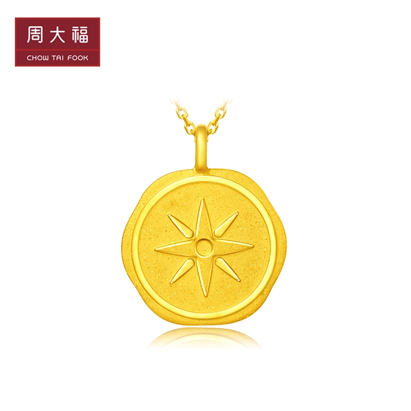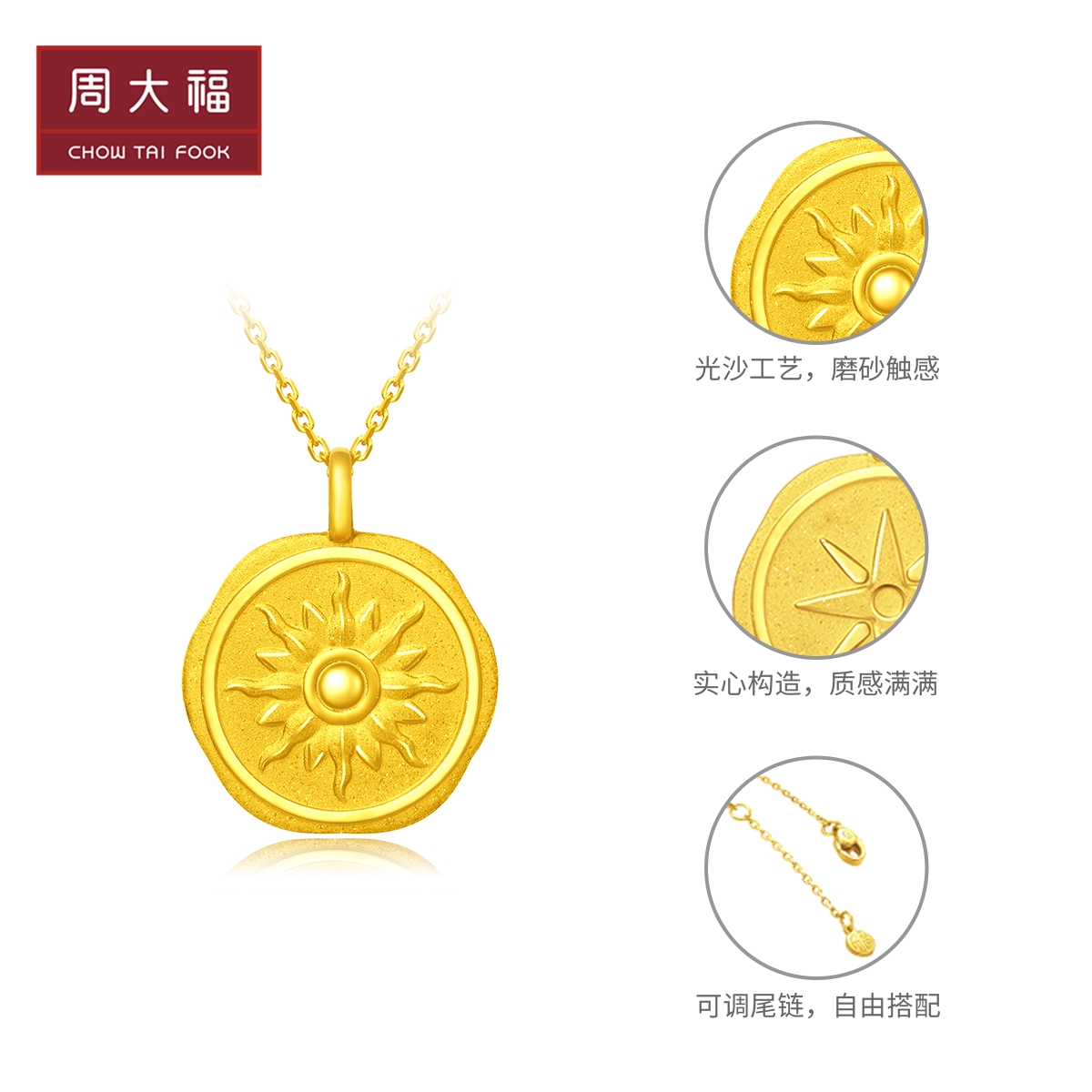Chow Tai Fook ING Series Fashion Sun Round Brand Foot Gold Necklace Pendant Pricing EOF88 Boutique