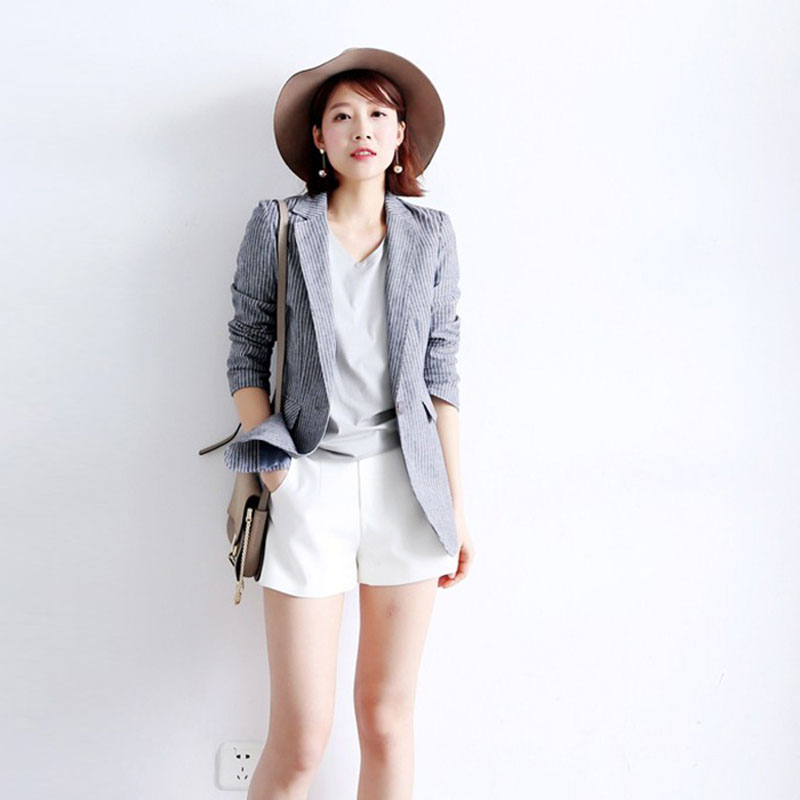 Cotton linen small suit jacket woman 2022 spring and summer new temperament working in long version striated 70% sleeves Western suit