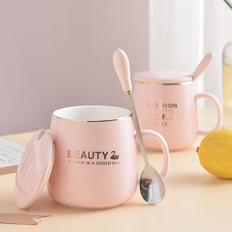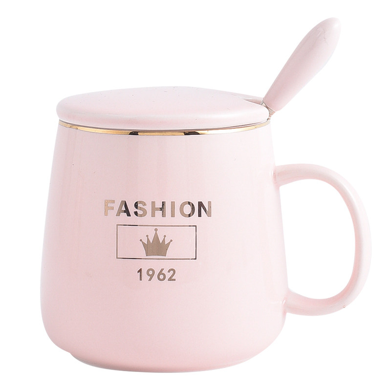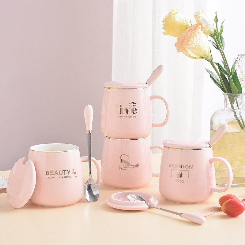 Pink girl heart cup ceramic with lid spoon mug simple creative coffee cup lovers cup birthday gift