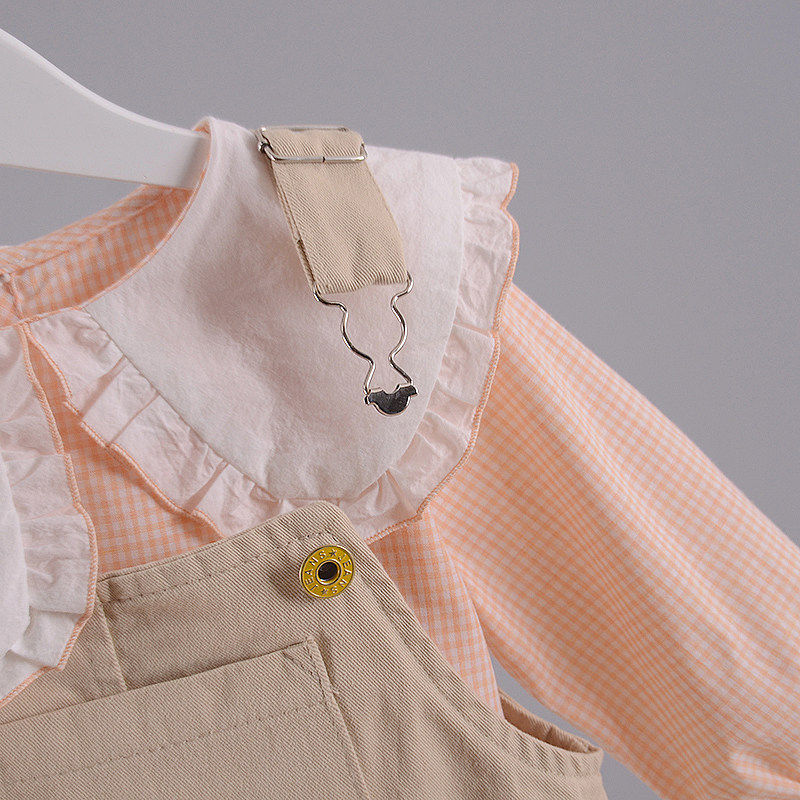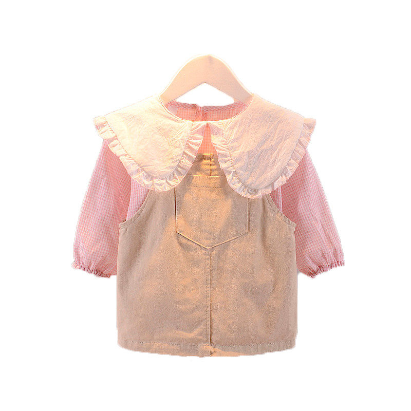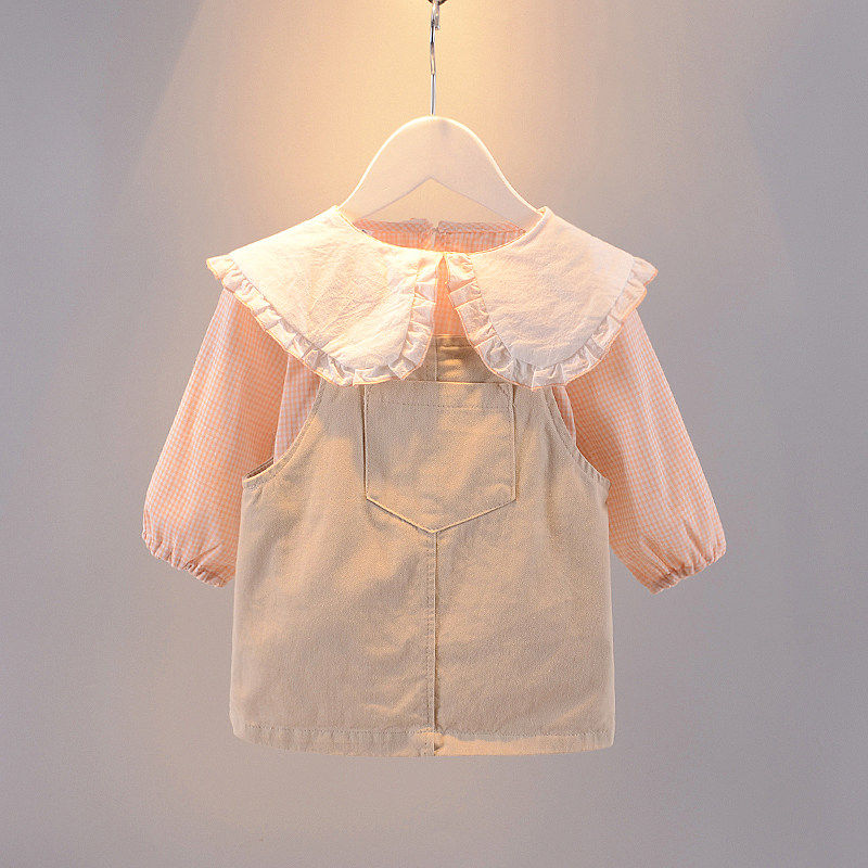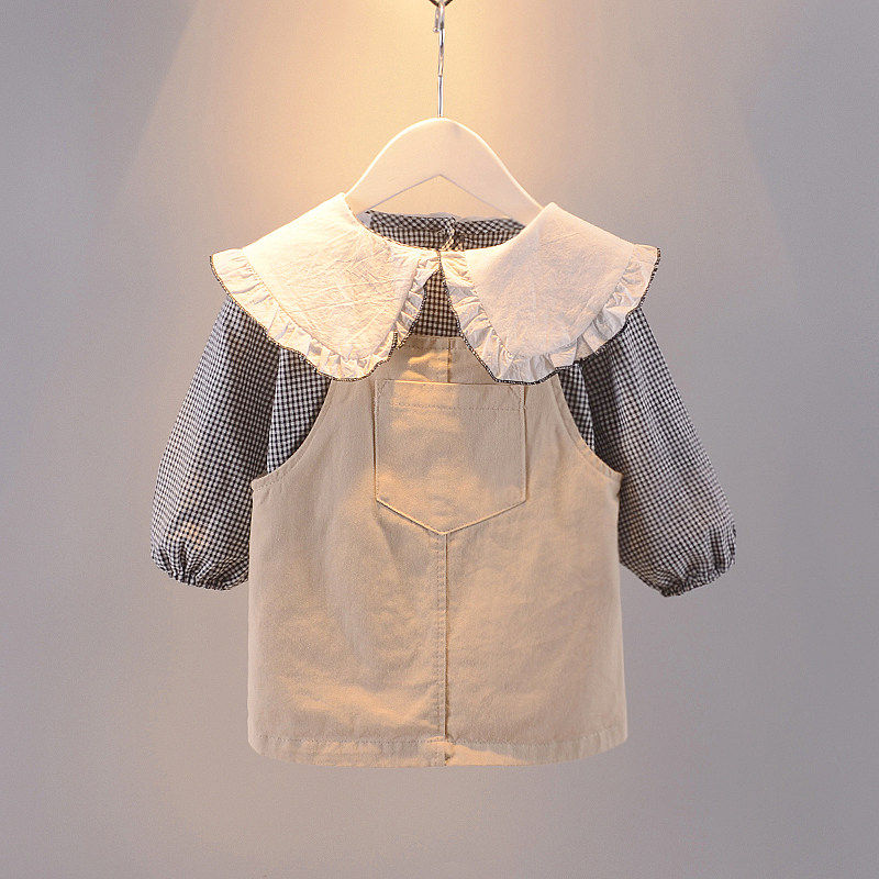 Baby girl spring clothes girl suit 2021 new Korean version of the Western style 0-4 years old spring and autumn spring shirt holding baby bag two-piece set
