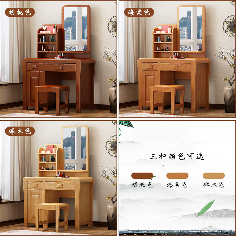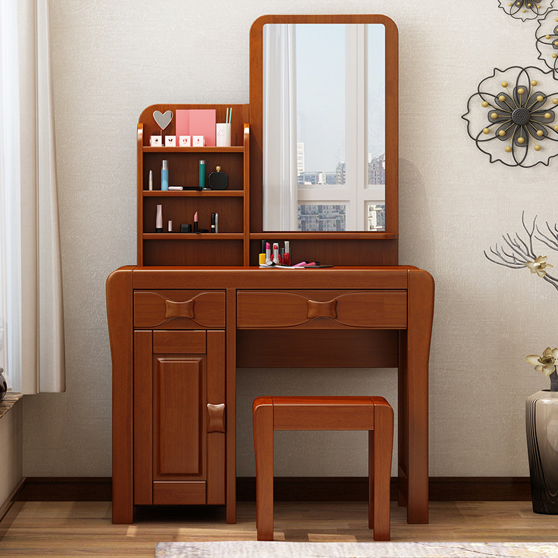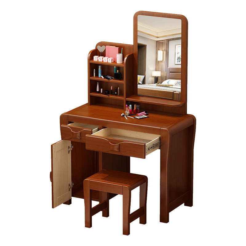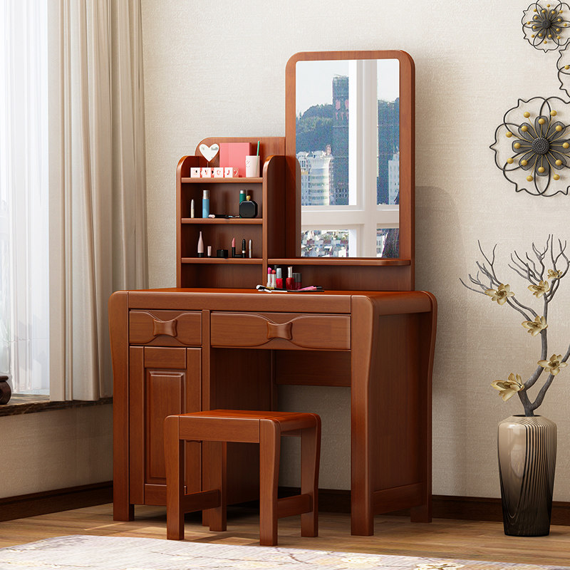 Modern Chinese solid wood Makeup Bench bedroom Carved Flower Log Assembles Furniture Multifunction Home Full Solid Wood Makeup Table