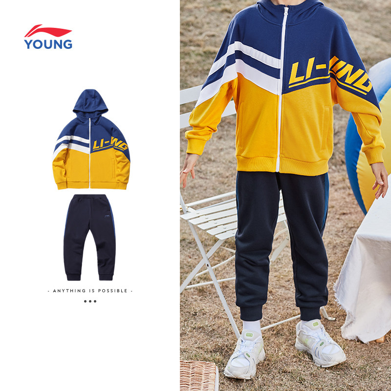 Li Ning children's clothing set men's and women's small children's official website flagship sweatshirt sweatshirts for primary school students casual knitting sports suit
