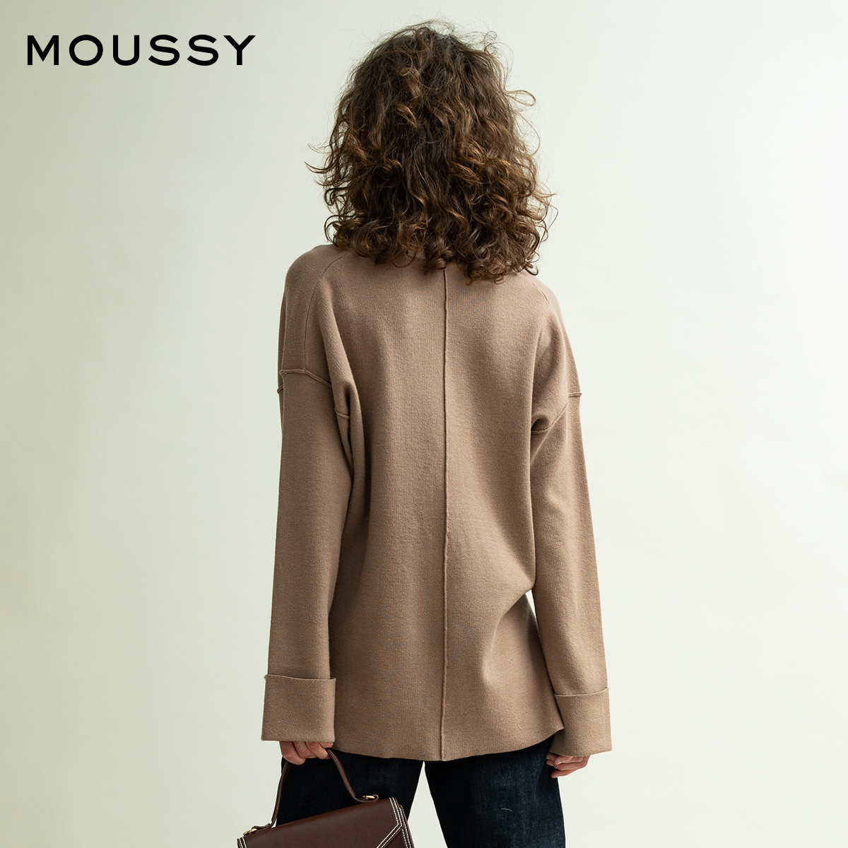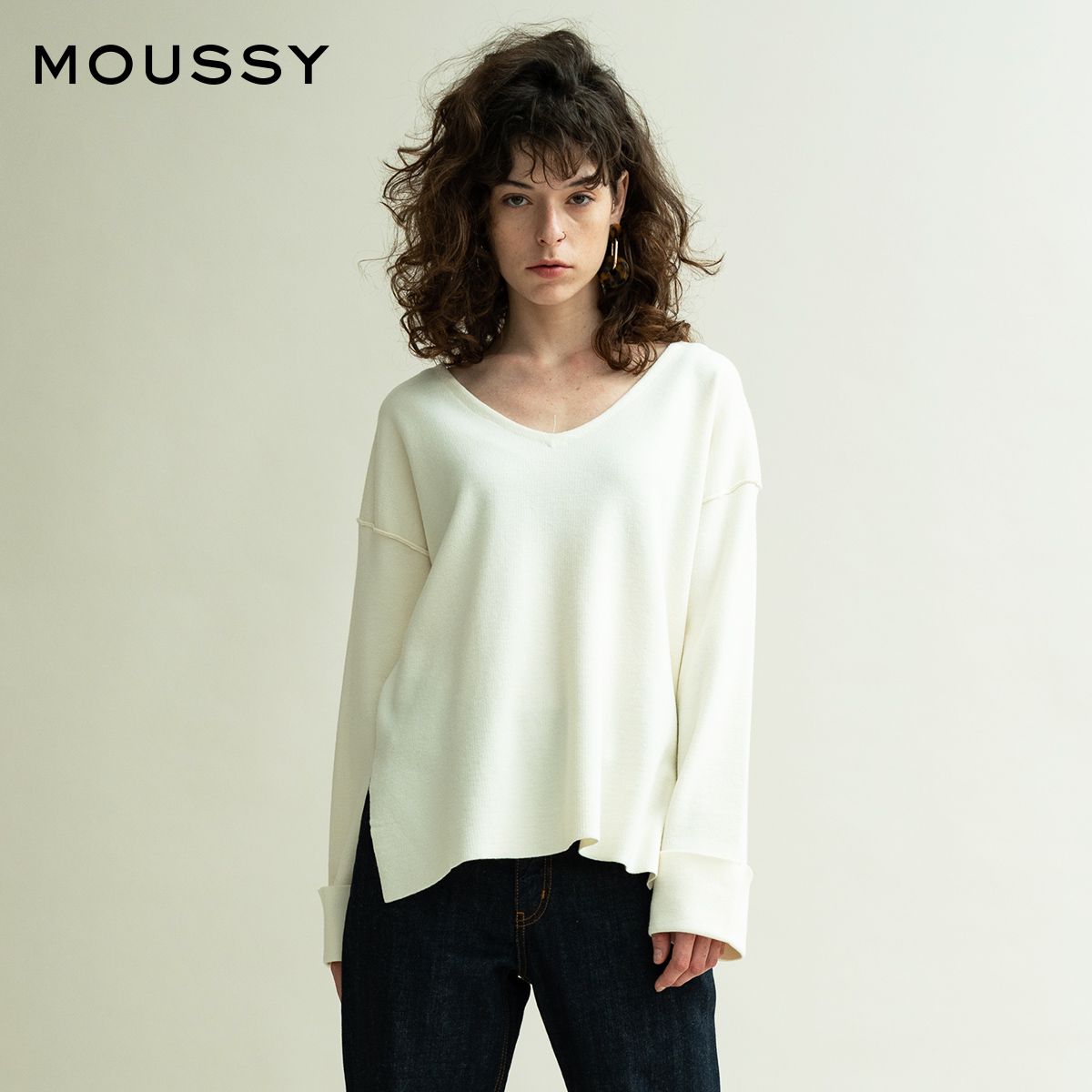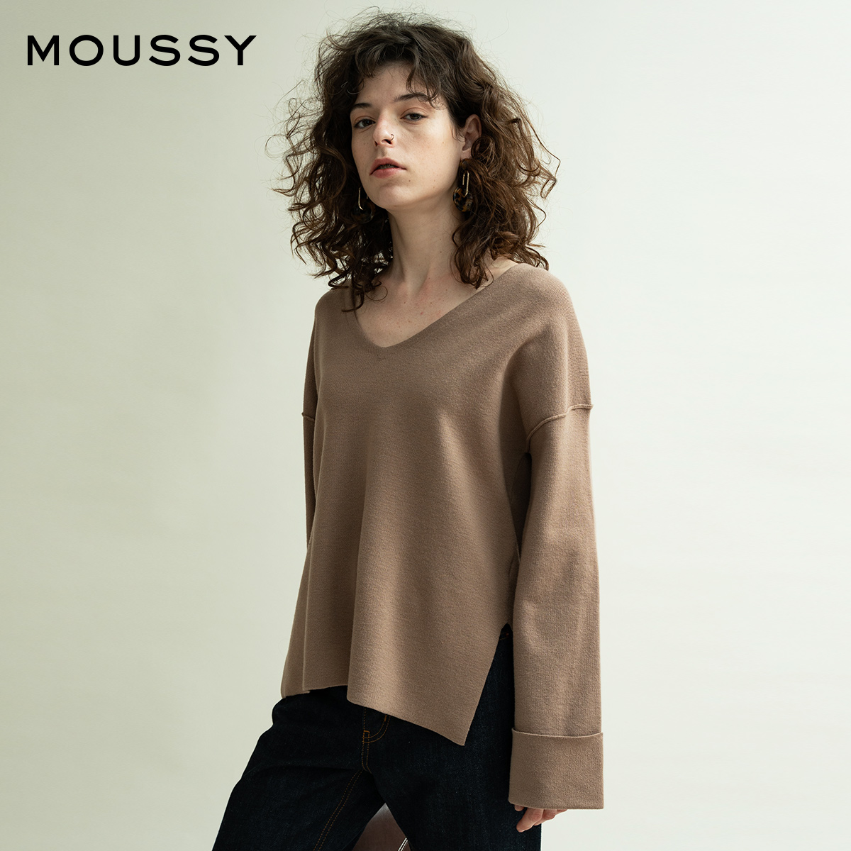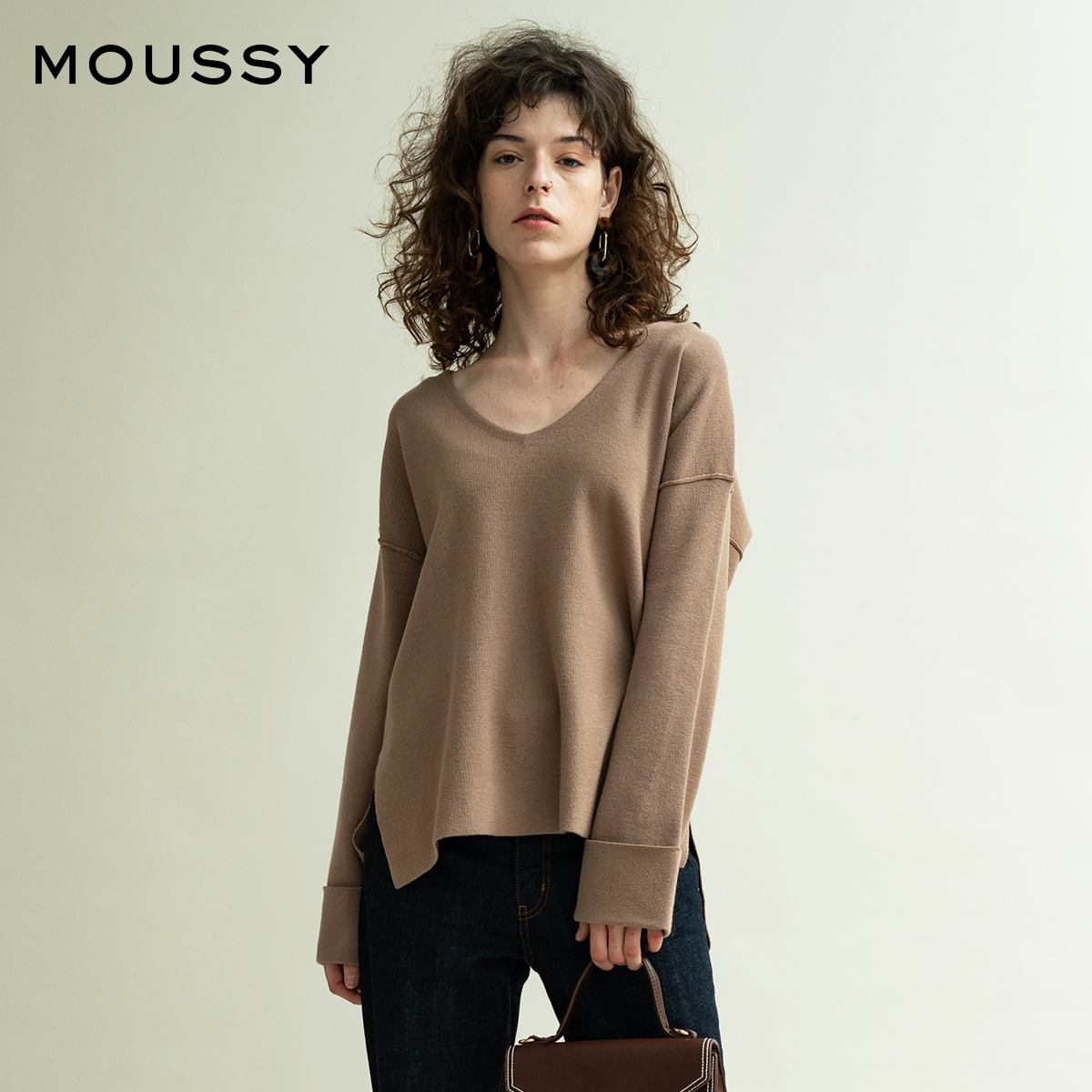 MOUSSY 20 new solid color v-neck front short back long shoulder knitwear 010DSG70-0360