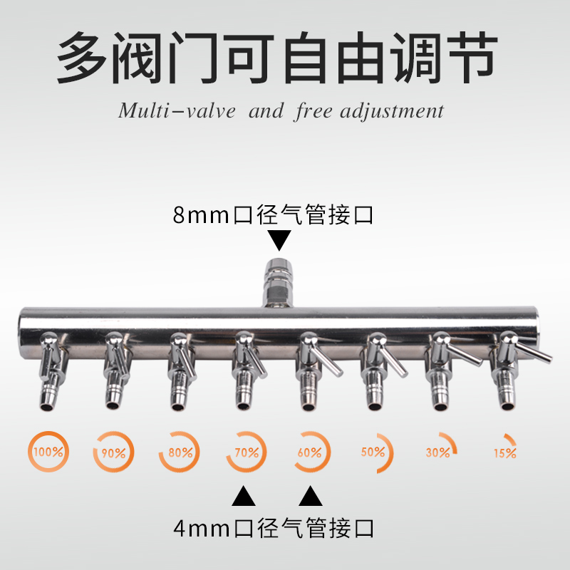 Fish tank oxygen pump diverter 10% 2 stainless steel tracheostomate oxygenated pump windpipe three-way air pressure regulating valve