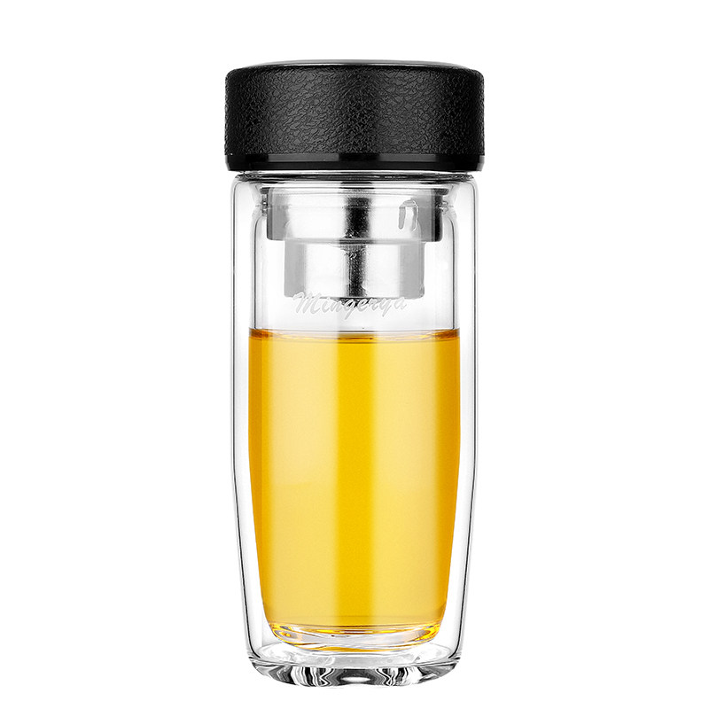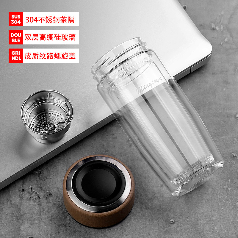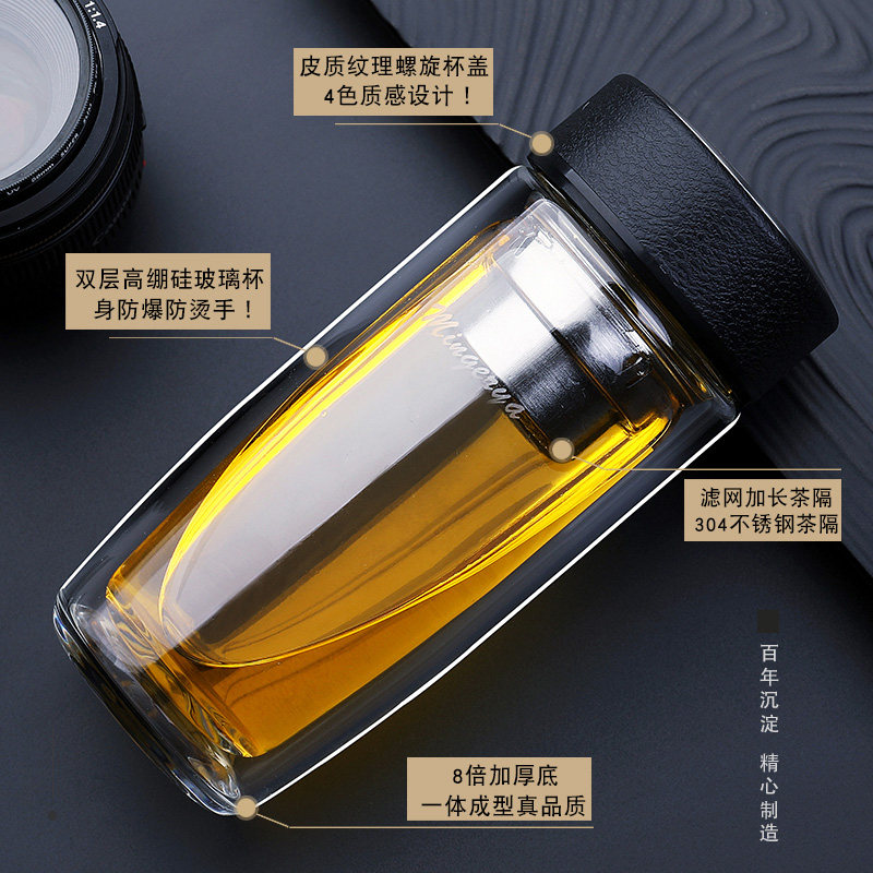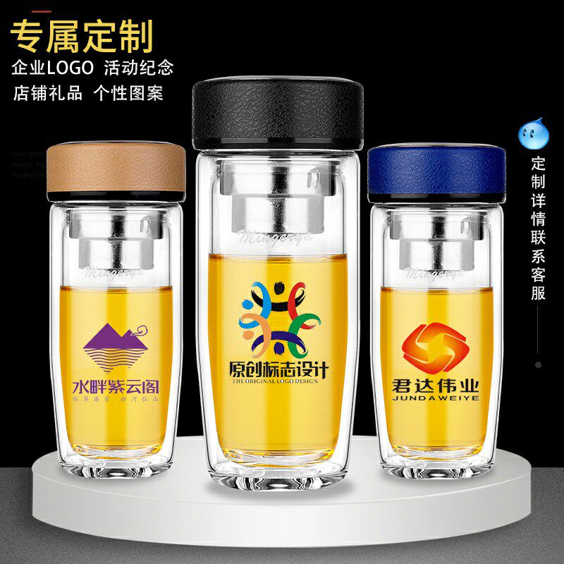 Bright and elegant glass cup double layer portable water glass short and fat mini custom men and women office business thickened tea cup