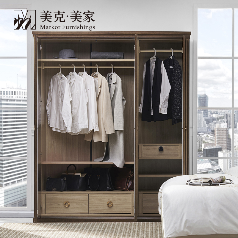(New product)Meike Meijia Rhine love song solid wood storage three-door storage wardrobe modern bedroom large wardrobe