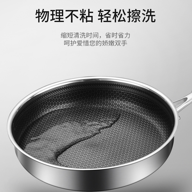 German no coating 304 stainless steel frying pan flat bottom pan without oil smoke without dipping into the pan household induction cookers universal cut pan