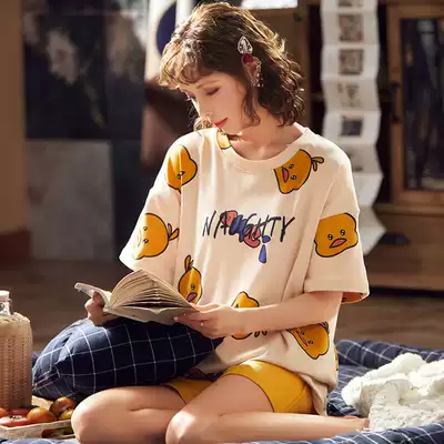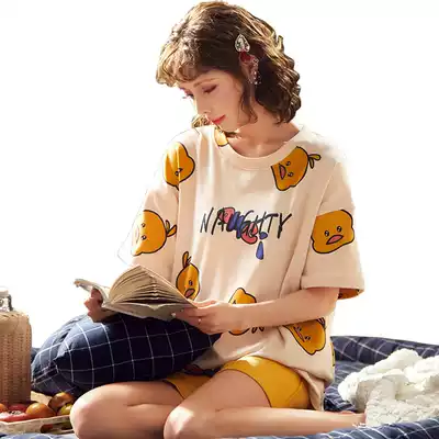 Pajamas ladies summer thin cotton short sleeve summer students Korean cute cartoon home clothing Yellow Duckling suit