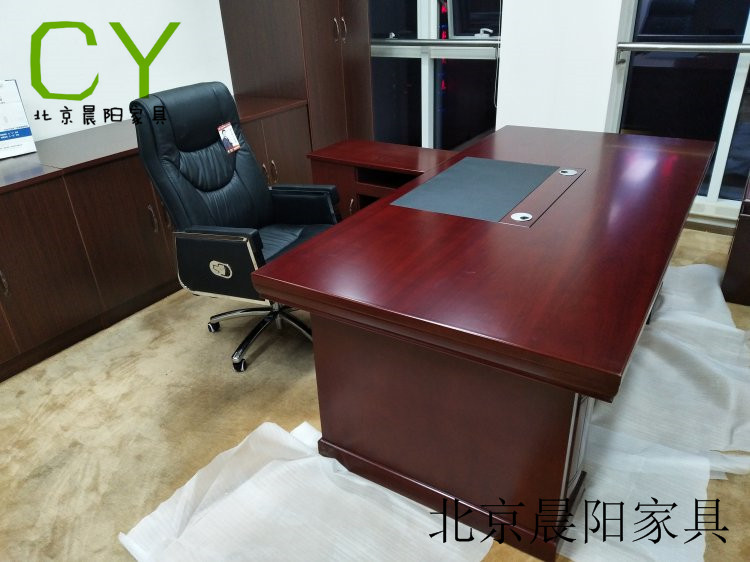Beijing Boss Desk Office Bantai property desk 1 6 meters wood leather desk Manager desk with deputy desk