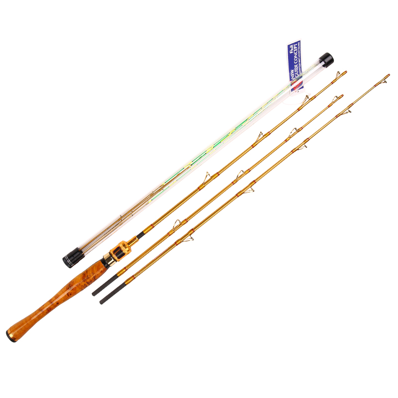 ten thousand Peak Raft Rind Raft Fishing Rod solid wood Handle Micro Lead Rod Soft Tail Titanium Alloy Glass Fiber Four Rod Slightly Inserted Valve Fishing Rod