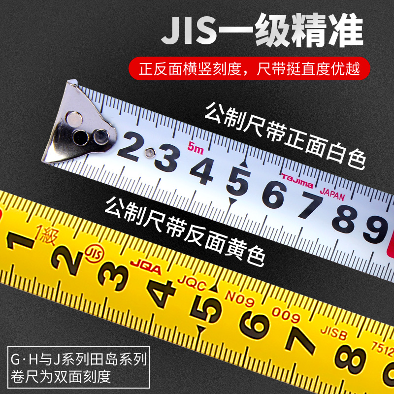 Tajima tape measure Japanese precision steel tape measure 5 meters 19mm25 red, green and blue anti-fall measurement wear-resistant ring ruler