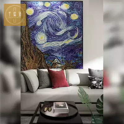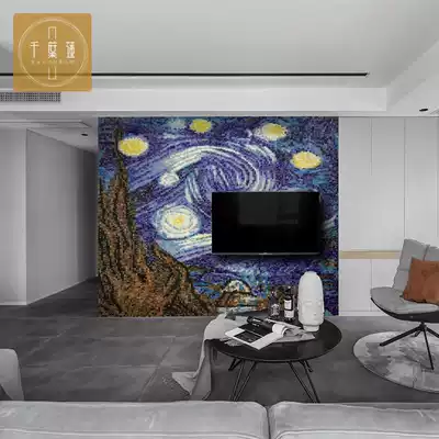 Foshan glass mosaic tile puzzle parquet background wall modern simple living room TV wall entrance decorative painting