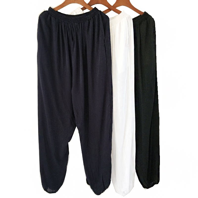 Artificial Cotton Trousers Male Style Kung Fu Light Cage Pants Anti-mosquito Practice Pants Summer Sleeping Pants Thin with big code Miansilk pants-Taobao