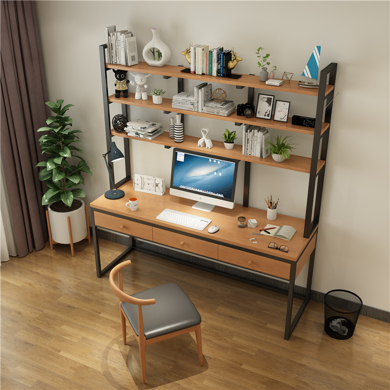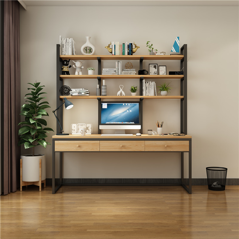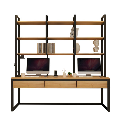 Solid Wood Double Desk Bookshelf Combo With Drawer Desk Study Desk Loft Nordic Lovers Computer Desk