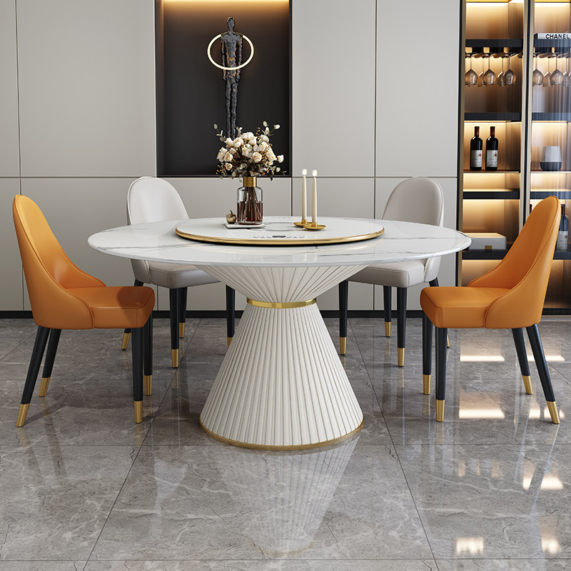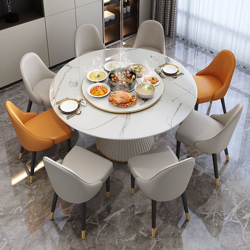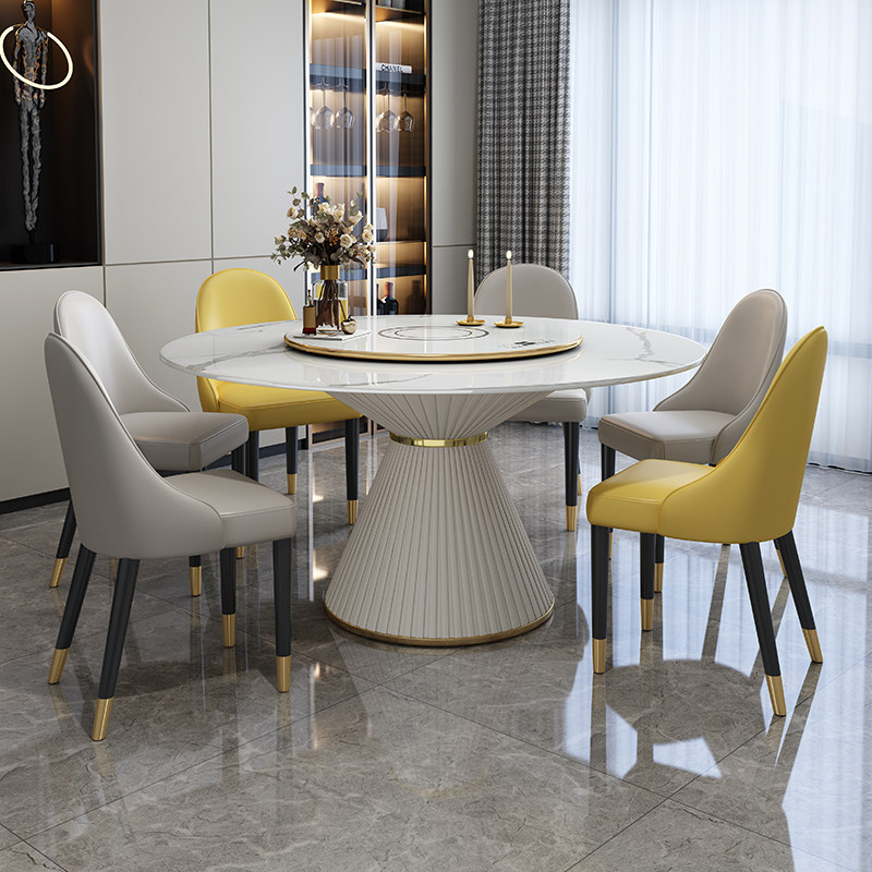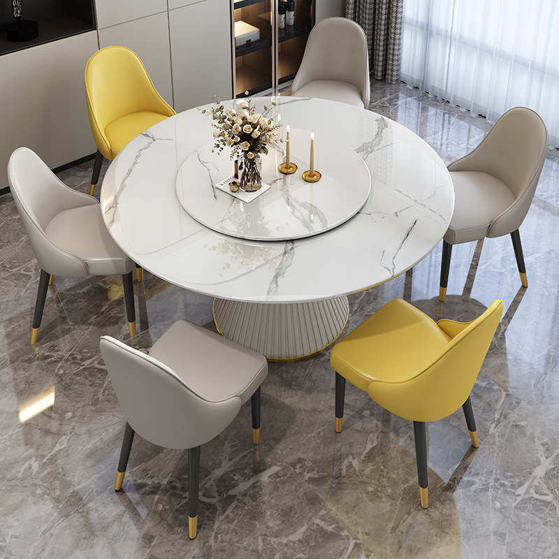Nordic marble dining table modern minimalist light luxury solid wood round table with turntable dining room slate dining table and chair combination