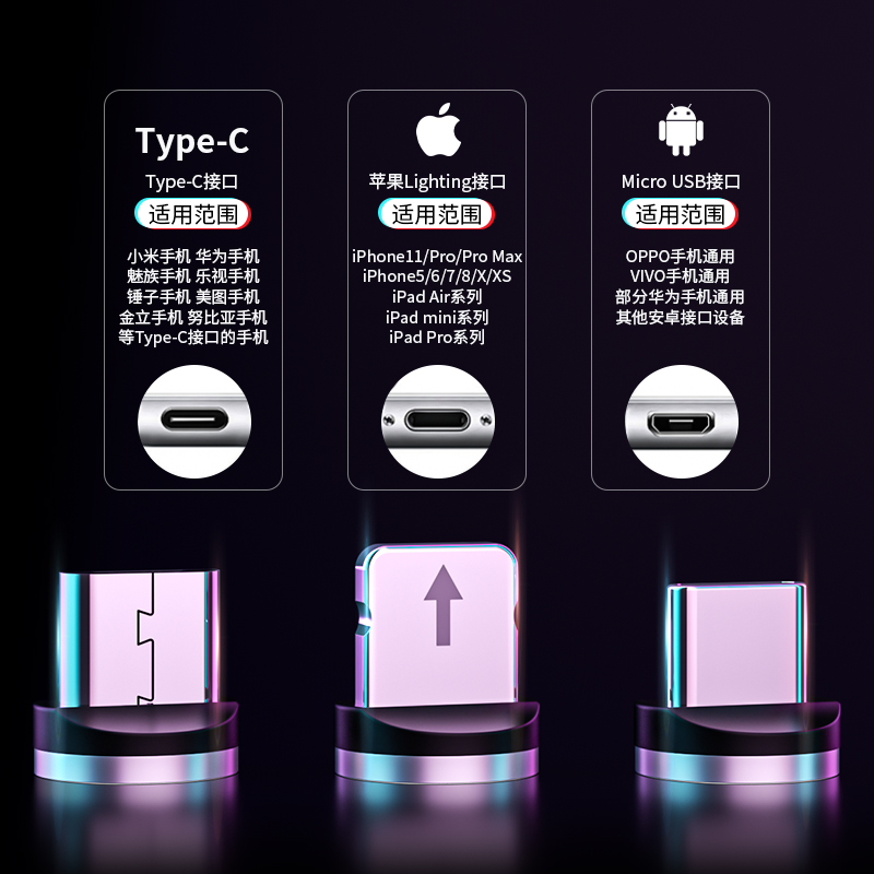 The following is the magnetic attraction (it is not clear the phone interface model please contact the customer service) The magnetic attraction tricolour flow light one drag three (Apple Android Type-C) strong magnetic does not drop the magnetic attraction