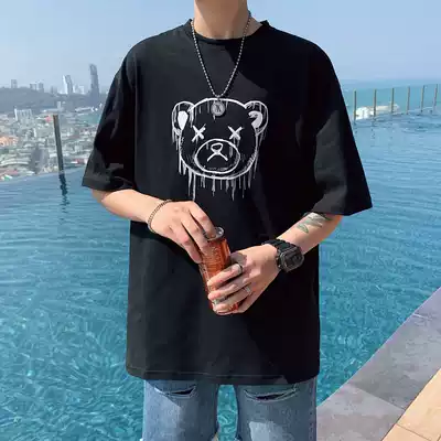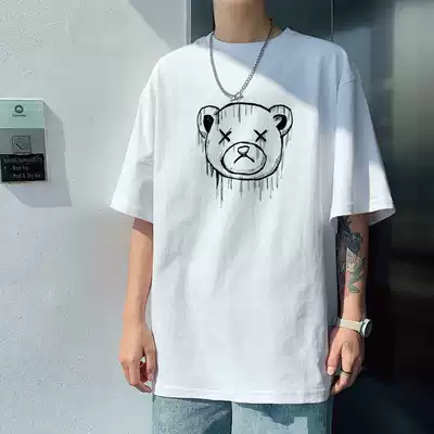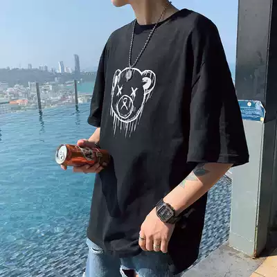 Short-sleeved men summer loose print Half sleeve T-shirt ins trend Korean casual Joker half-sleeved men's base shirt